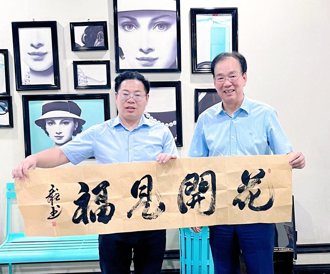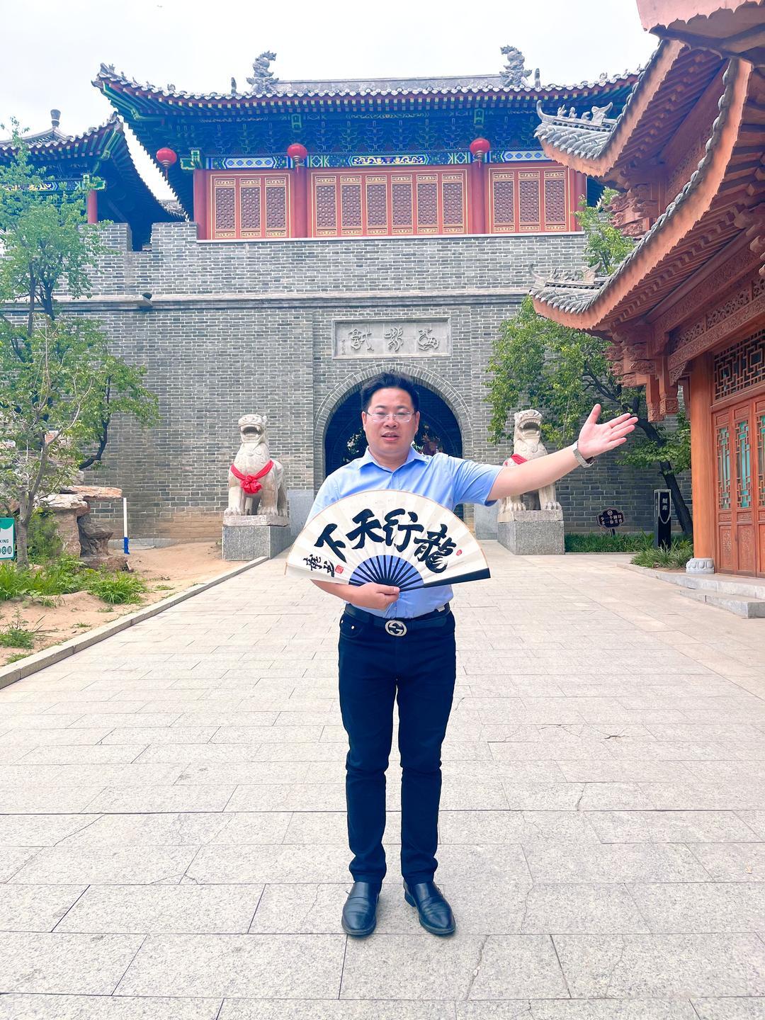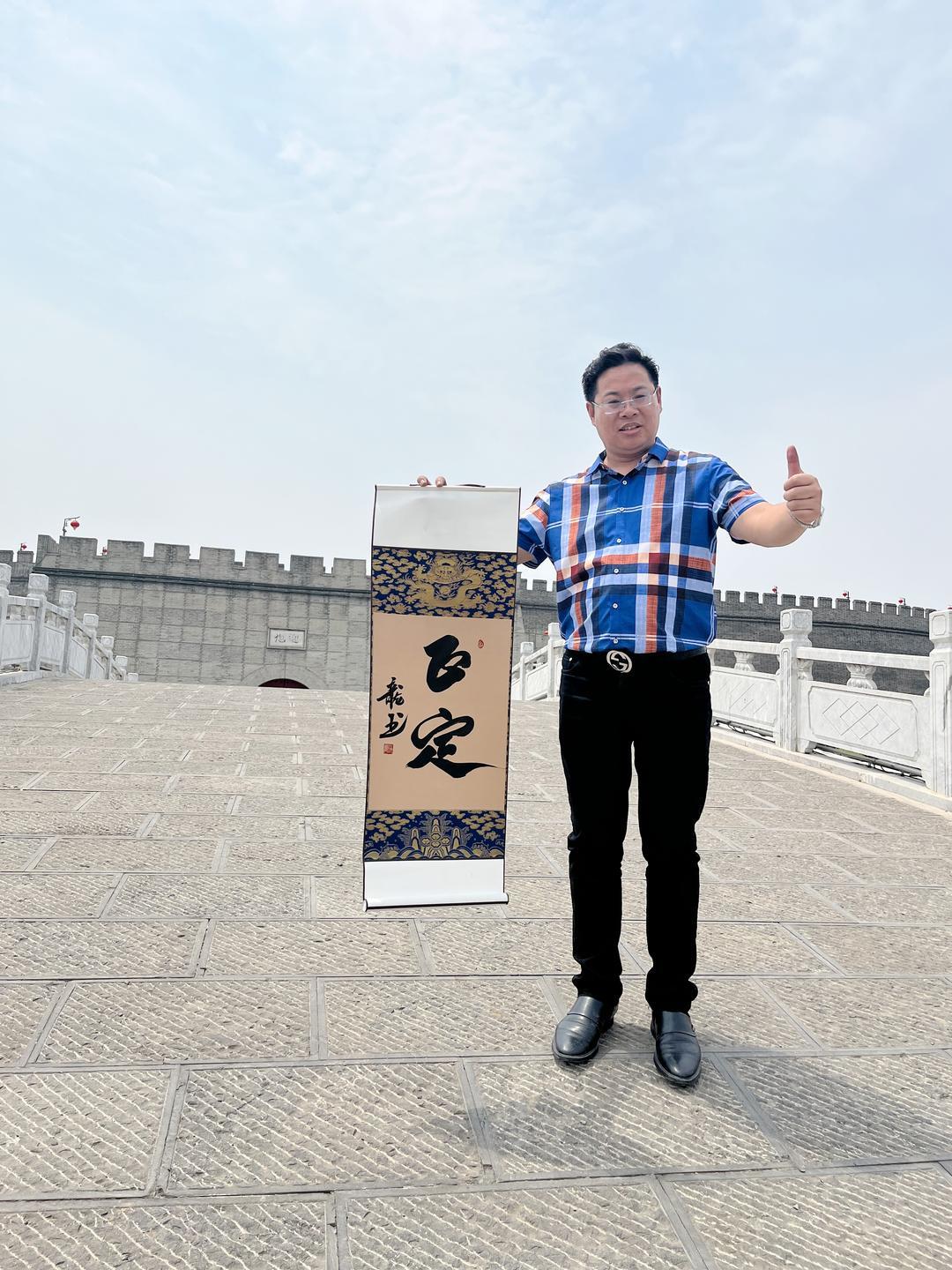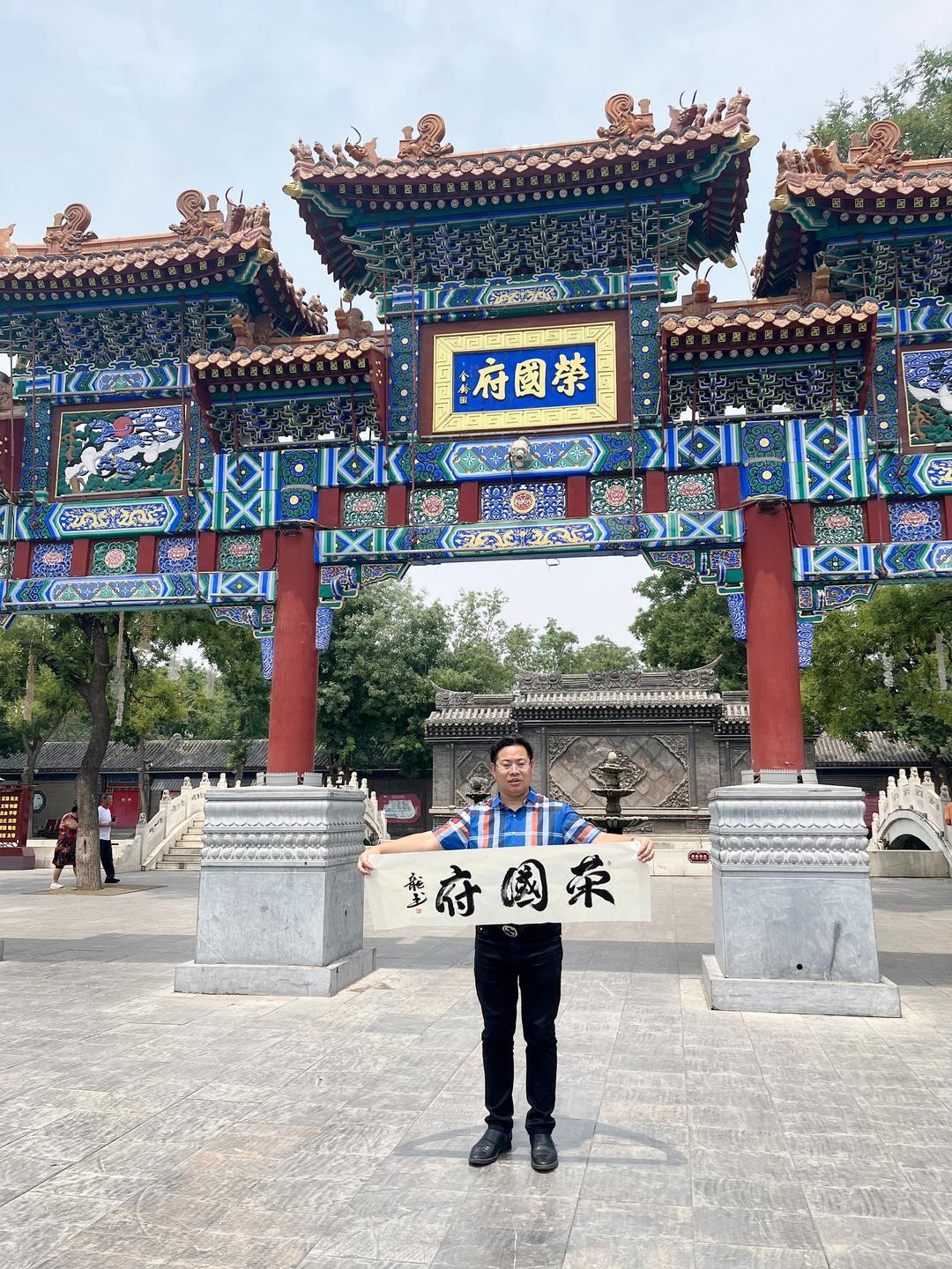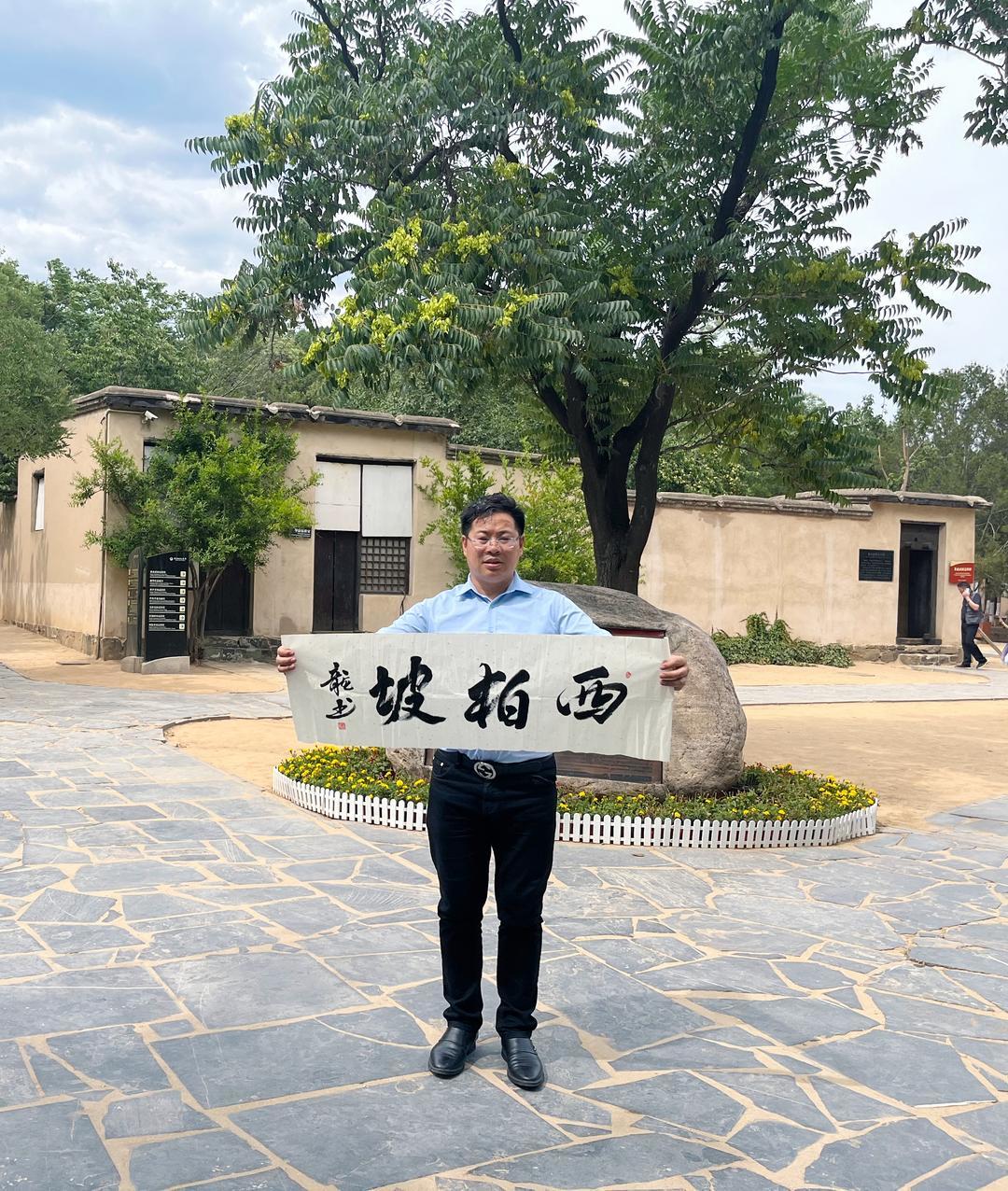 石家庄新乐市文物管理所所长温朋远接收张龙题字书法作品伏羲台