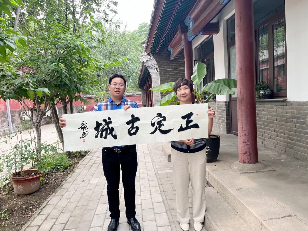 为正定古城和隆兴寺题字,正定县文物保管所所长崔伟丽接收书法作品