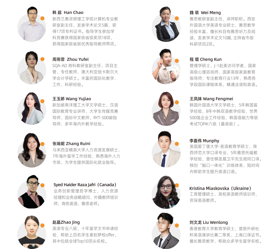 设置四大课程,“国际职业规划课程”、“国际专业课程”、“国际通识课”、“外语强化课程”,跨越分段升入海外名校,五维导师国际化加强培养体系。