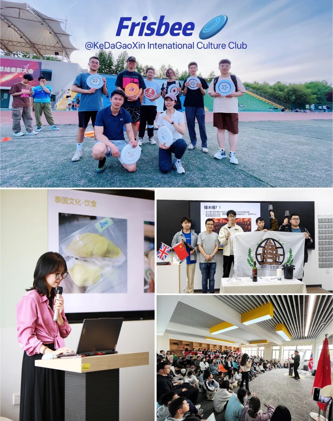 国际文化社团活动已举办奥运会志愿者英语沙龙、红酒文化沙龙、泰/韩/英/法/俄等国家文化沙龙、国际飞盘课程、国际瑜伽体验等活动,并开设有小语种选修课,开拓学生的国际视野,加深对世界的认知。