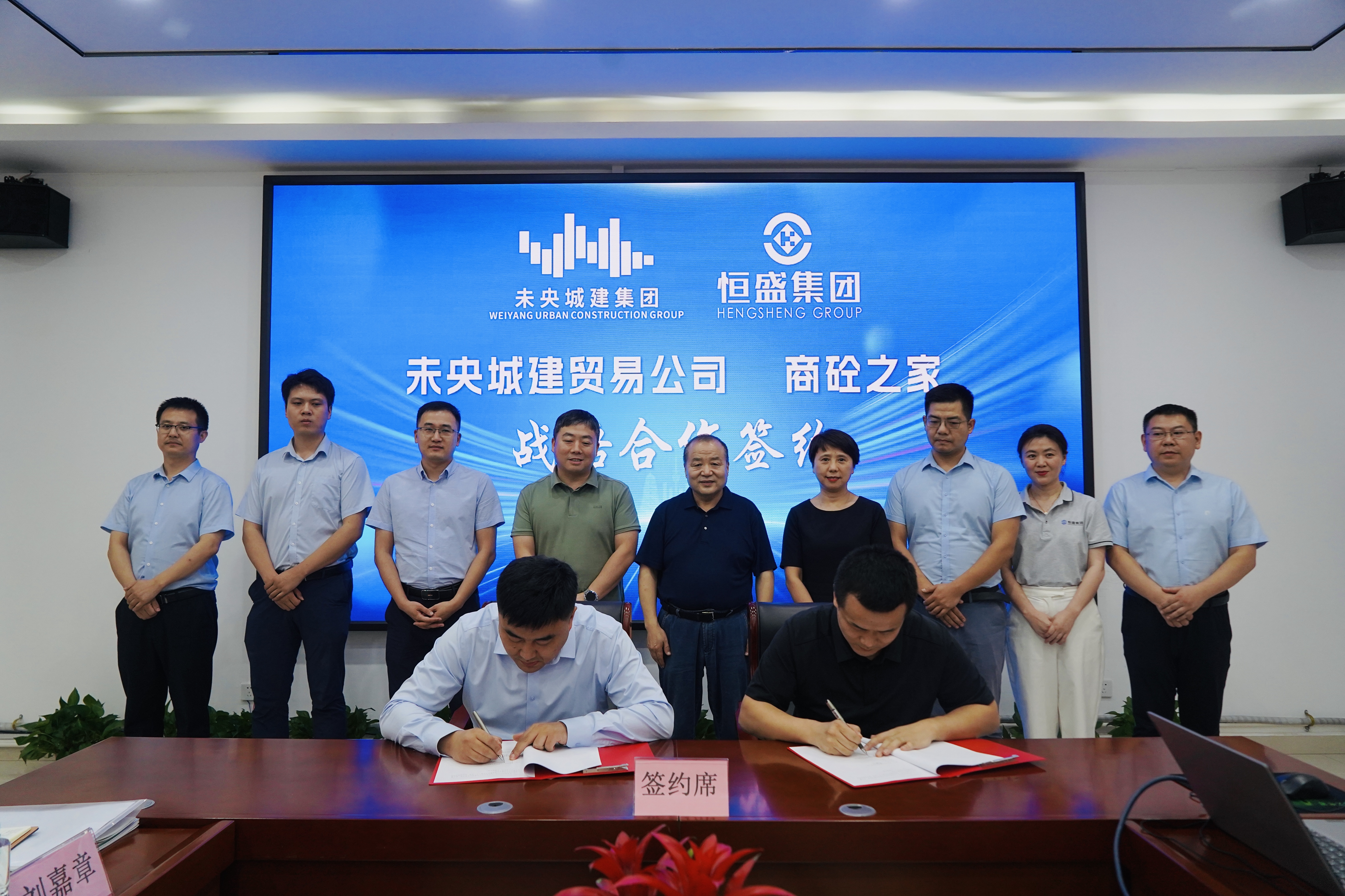 7月8日,陕西恒盛集团与西安未央城市建设集团有限公司签署战略合作协议。未央城建集团董事长白少奎,财务总监王慧斌,办公室主任强煜,投资收益部部长、未央城建贸易公司总经理荀斯宁,商业贸易部负责人鲁健普,采购专员宋增荣,大岳咨询公司总监李佳辰,陕西恒盛集团董事长王武锁,集团副总经理王博、朱芳,陕西博隆信德贸易有限公司总经理吴涛,集团战略发展部经理张锦等人出席签约仪式。双方就落实战略合作相关内容进行深入交流并达成共识。