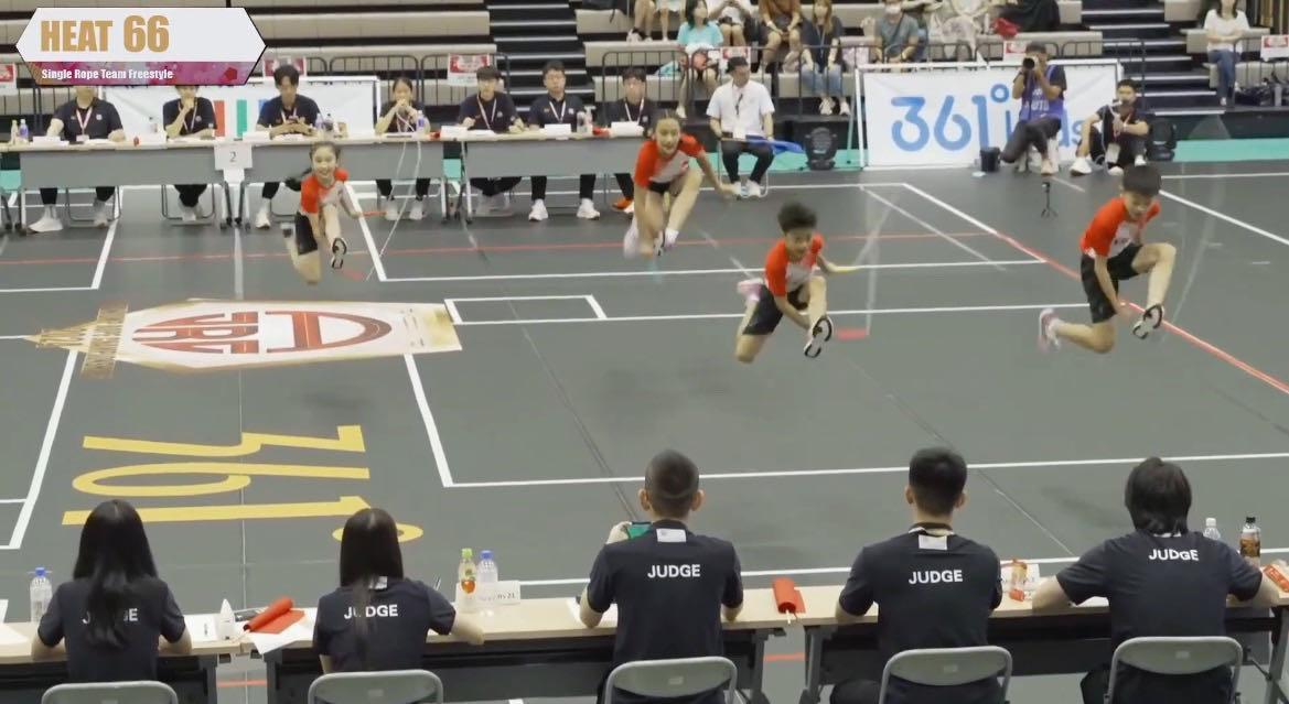 在赛场上,郭佑辰展现出超越年龄的沉稳和自信。上场时,他给自己喊加油,眼神坚毅,与队友的完美配合,征服了现场的评委和观众,成功摘得四人同步花样冠军。同时,在2*30秒双摇接力比赛中,他与队友零失误并稳定发挥完成比赛,取得该项目冠军。