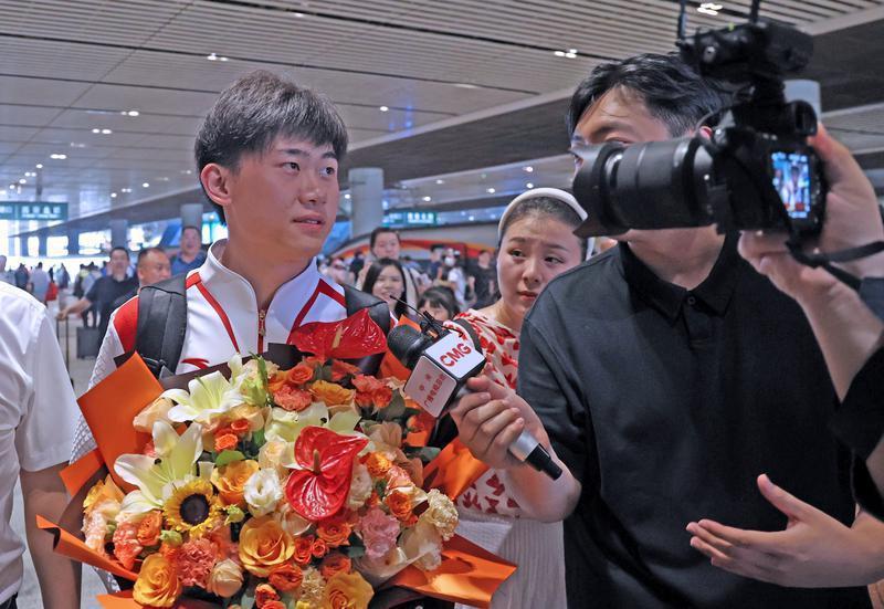 在西安北站举行的欢迎仪式上,陕西省体育局、西安市体育局和陕西省射击射箭运动管理中心的领导、教练、队员们,用鲜花、横幅和掌声欢迎奥运冠军凯旋而归。现场的游客和返乡的古城市民,当得知是奥运冠军刘宇坤载誉而归后,也纷纷掏出手机记录下了热烈的场面和难忘的瞬间。而对于自己此番征战巴黎奥运的感受,刘宇坤坦言:“作为一名运动员,拿金牌、破世界纪录都是我们为之奋斗的目标,我其实渴望能在奥运会决赛中打出更高的环数,突破自己的历史最好成绩,可惜没能实现,希望能在下次比赛中有更好的发挥。”