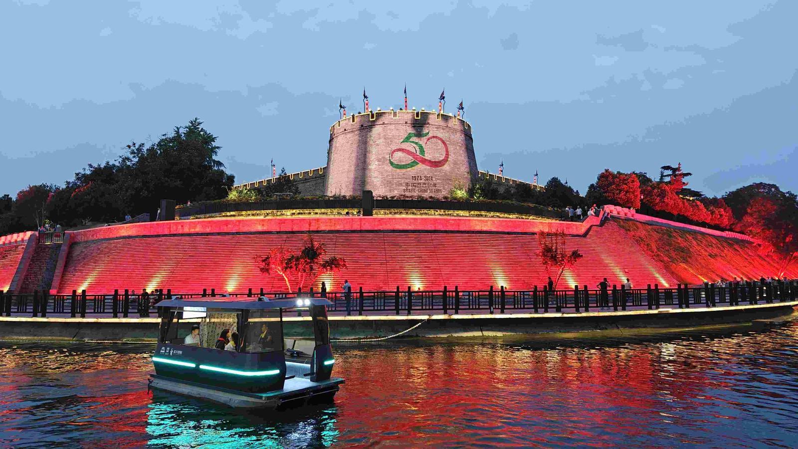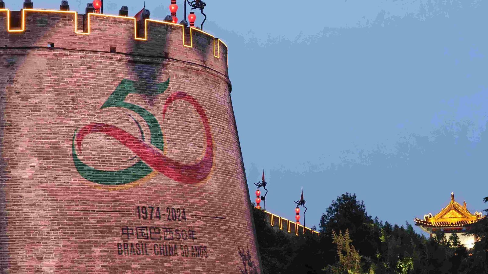 原标题:西安上演“灯光秀”庆祝中国与巴西建交50周年