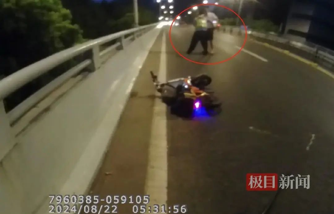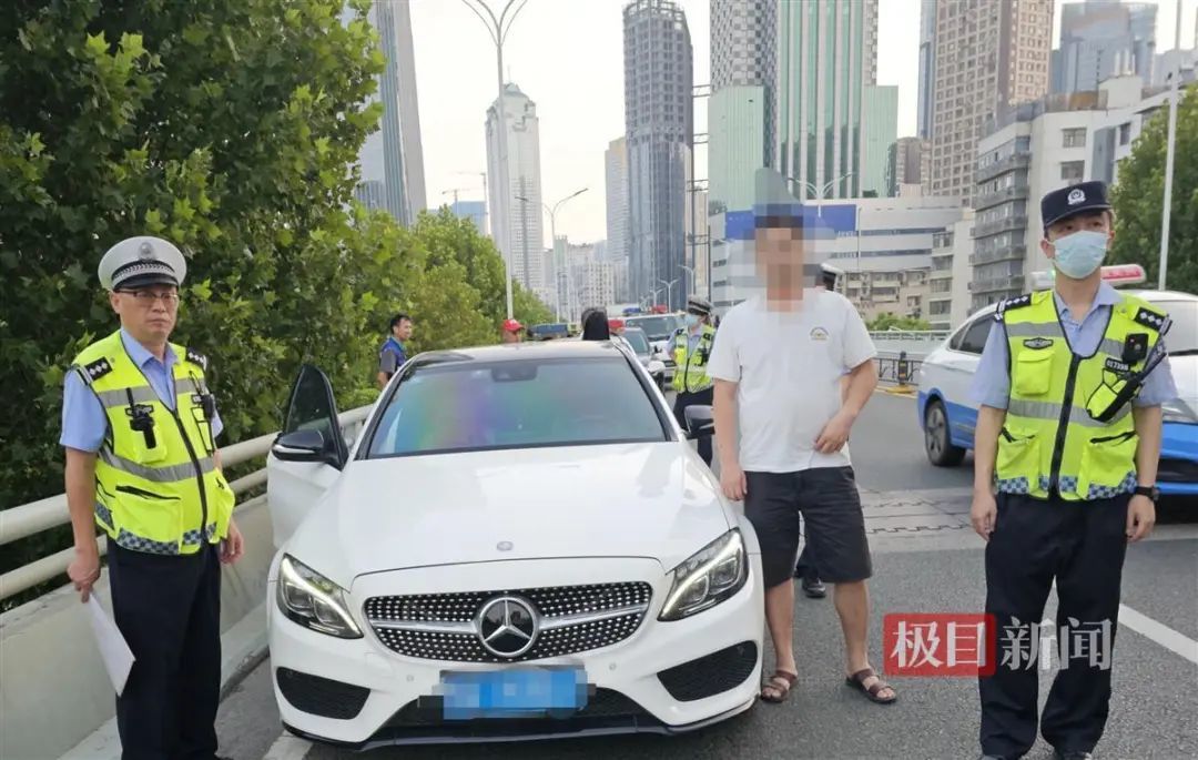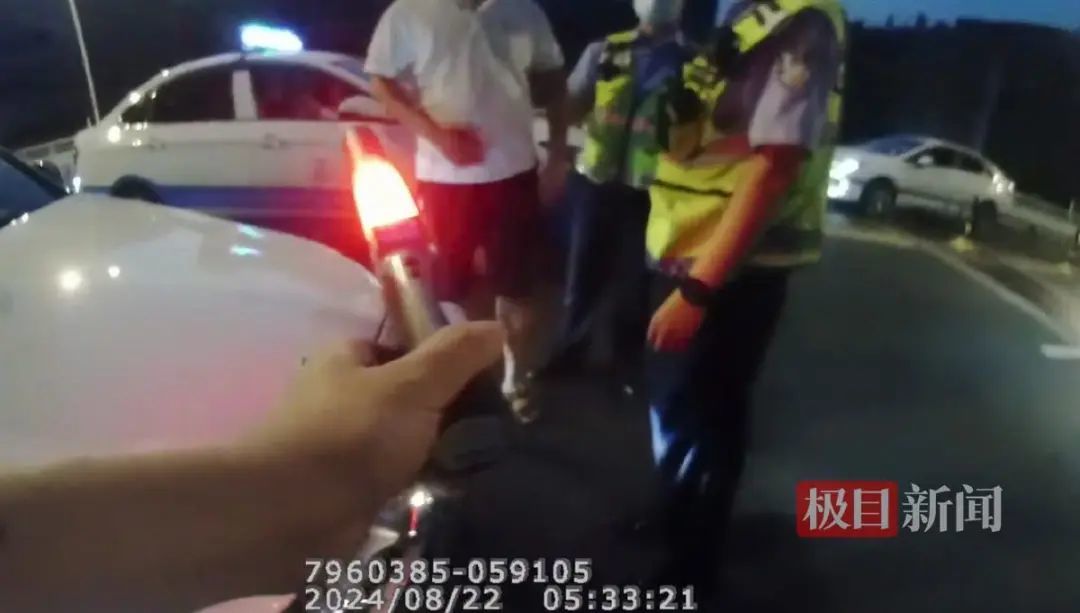 8月22日凌晨,武汉市公安局硚口区交通大队一中队民警代能胜带领警力,开展夜间交通违法整治工作。凌晨5时许,他们巡逻至京汉大道茶叶市场时,发现约50米开外的高架桥上,一辆小车突然停下,一名男子从驾驶位下来,匆忙打开后备箱,似乎急着要拿什么东西准备逃跑,其行迹十分可疑。