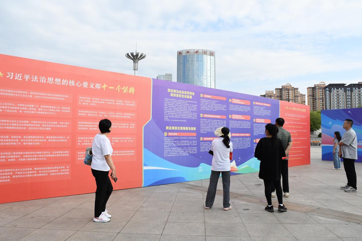 奏响法治“交响曲”,生动普法润心田。展览以图文并茂的形式,生动形象地展示了民法典的精髓、法治金句以及榆林市法治化营商环境的实践成果,营造尊法学法守法用法的浓厚氛围,有效提升了普法宣传效果。