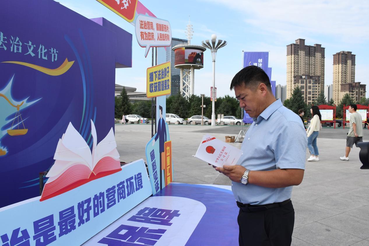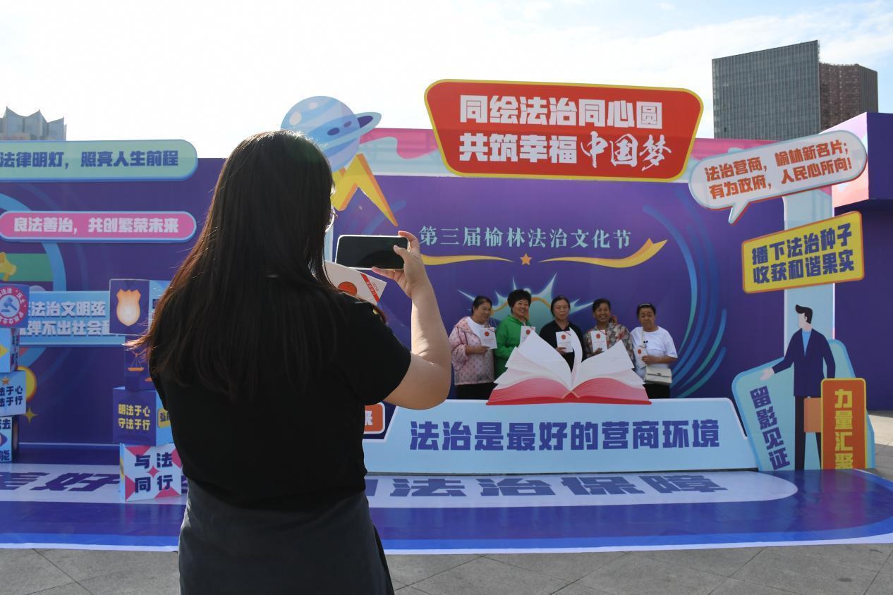 为增强公众参与度与体验感,展览还设置互动展板,参展群众纷纷在法治文化标语墙、合影展前打卡合影;现场还为群众派发《宪法》《民法典》《公司法》等书籍,寓教于乐,法治文化的种子在欢声笑语中生根发芽。近年来,榆林市举办了法治文化节、“宪法宣传周”、“法律六进”等特色法治宣传活动,多形式、多内容进社区、进企业,不仅普及法律知识,更是法治精神的深刻传递。