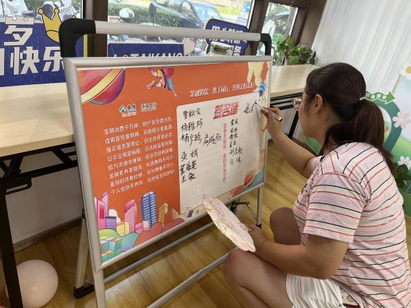 活动开始前,内勤老师引领到场的客户在消保签名墙签名,共同宣誓“金融消保,携手同行,共创美好未来”的坚定信念。接着集中进行消保、反洗钱金融知识问答,加深了大家对消费者权益保护和反洗钱的理解与重视。