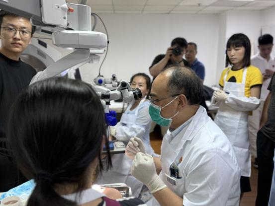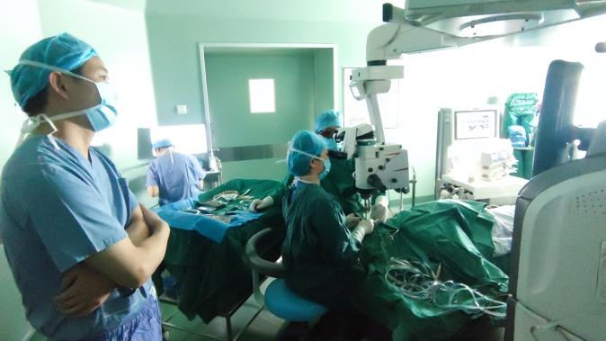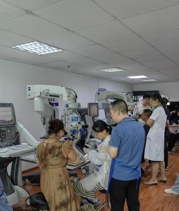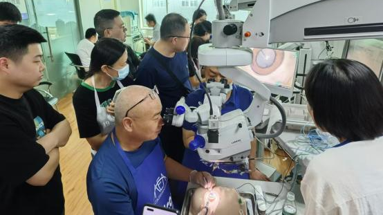 王睿主任及屈超义主任通过展示手术视频影像资料,为学员们讲解了糖网相关手术要点,并带领学员去手术室及实训室进行观摩、上机实操。