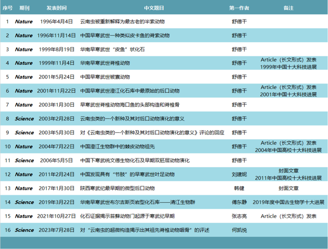 舒德干院士领衔的西北大学古生物研究团队长期致力于早期生命演化研究,该团队自1996年以来,在国际顶尖期刊《自然》和《科学》杂志上已发表16篇文章。
