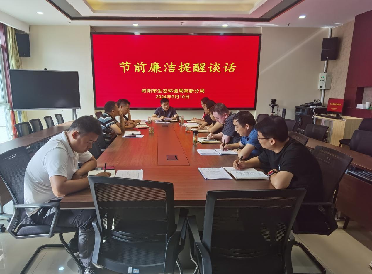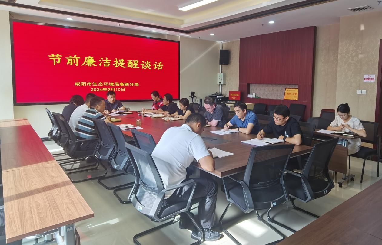 中秋、国庆两节临近,为深入贯彻落实全面从严治党要求和中央八项规定及其实施细则精神,持之以恒正风肃纪,坚决防止节日期间“四风”问题反弹回潮,营造廉洁文明、风清气正的节日氛围。9月10日,咸阳市生态环境局高新分局召开中秋、国庆节前廉洁提醒谈话会,高新分局领导班子成员、各科室负责人及副中队长以上人员参加会议。