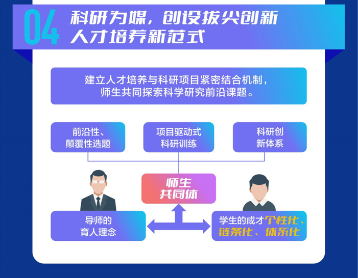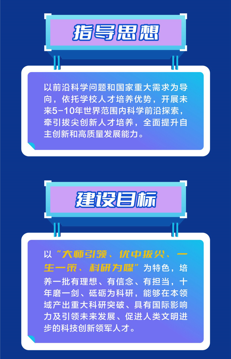 该计划以前沿科学问题和国家重大需求为导向,依托西安交大人才培养优势,以“大师引领、优中拔尖、一生一策、科研为媒”为特色,通过构建师生“伴学伴长”的人才培养体系、“本博一体化”的贯通培养模式、“一生一策”的个性化人才培养路径、项目牵引的拔尖创新人才培养范式,开展未来5-10年世界范围内科学前沿探索,牵引拔尖创新人才培养,培养一批有理想、有信念、有担当,能够在本领域产出重大科研突破,具有国际影响力及引领未来发展、促进人类文明进步的科技创新领军人才。