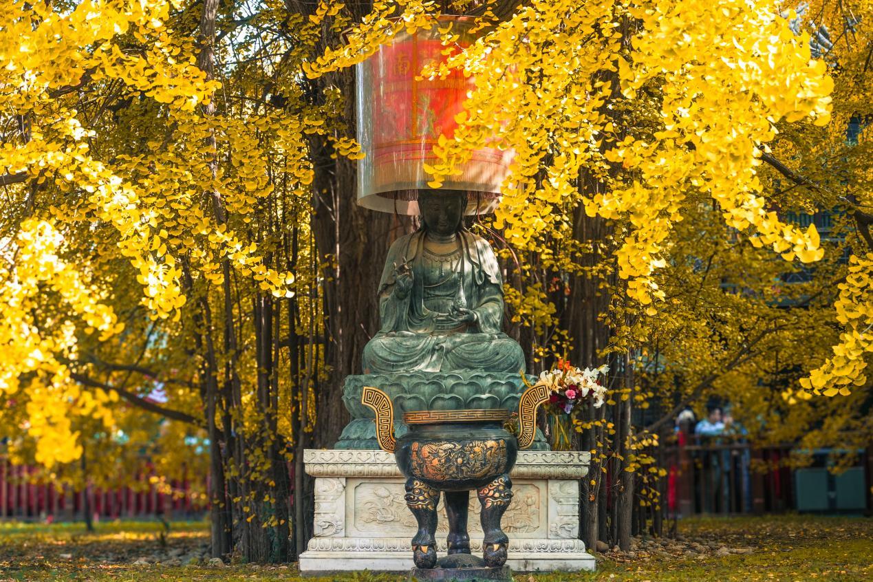 知乎头部答主红护感慨道:百闻不如一见,今天终于见到这棵傲立千年的古银杏树真容,瞧这一地金黄,极致的灿烂,宛如历史的回响。伴着清幽的寺院梵音,这种喧闹和宁静的极致交融,不禁让人生出流光易逝的感叹。