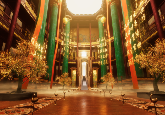 《一梦入大唐》通过新颖奇特实时互动的叙事方式向体验者再现了唐朝的文化、历史及风土人情,利用VR大空间技术构建一个立体、动态、实时互动的大唐盛世,将古老历史文化与创新的VR大空间这一前沿技术相结合,是现代科技与活化历史的全新尝试。