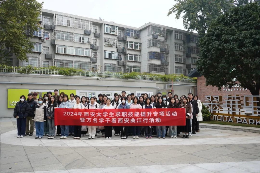 11月14日,由西安市人力资源和社会保障局主办、西安市人才服务中心、西安曲江新区党群工作部承办的“服务促就业 梦想筑未来”2024年西安大学生求职技能提升专项活动暨万名学子看西安曲江行活动成功举办,陕西师范大学、西北大学、西安翻译学院、西安培华学院四所高校的60名大学生参与活动。通过参观翠华里产业园区大学生们得以近距离感受职场氛围,深入了解西安的产业发展,为未来的职业生涯奠定基础。