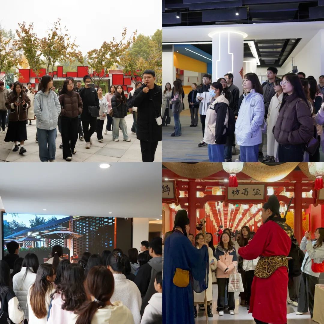 在翠华里产业园区,学子们参观了立习舍及西安星辰云控股有限公司等部分企业,了解到了园区发展规划、配套设施和周边环境,通过与职场人士的互动交流,学子们还收获了宝贵的职场经验和职业规划建议。随后,学子们来到长安十二时辰主题街区,沉浸式感受历史文化底蕴与现代商业的融合发展。
