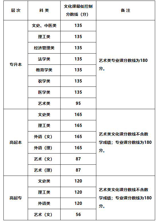 2024年陕西省成人高校招生各科类录取最低控制分数线如下: