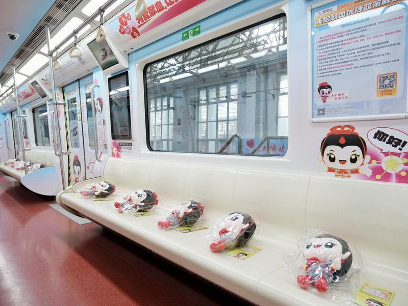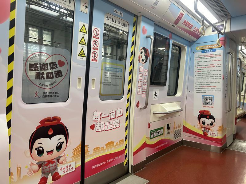 专列上,“为爱献血,让爱传递”“无偿献血,救人利己”等宣传标语随处可见,传递着积极向上的正能量。值得一提的是,车厢内还出现了西安市中心血站的IP形象——俑俑。它以不同姿态向乘客热情问好,向广大献血者致以诚挚的感谢。