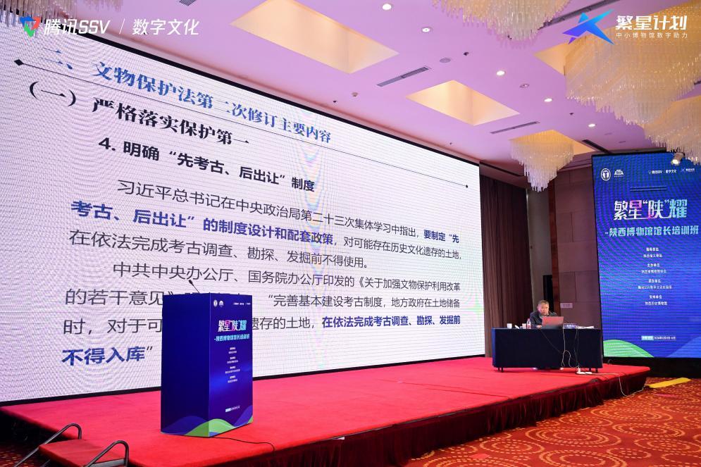 12月5日,在陕西省文物局指导下,由陕西省博物馆协会主办,腾讯SSV数字文化实验室承办的繁星“陕”耀—陕西省博物馆馆长培训班在西安成功开班。本次活动为期两日(12月5日-6日),陕西省国家三级以上博物馆及新开放博物馆近90位馆长,陕西省文物局机关有关处室主要负责同志,省局直属单位、西安市局直属博物馆班子成员和业务骨干200余人参加培训。陕西省文物局党组书记、局长贾强出席并讲话。省文物局党组成员、副局长孙周勇主持。