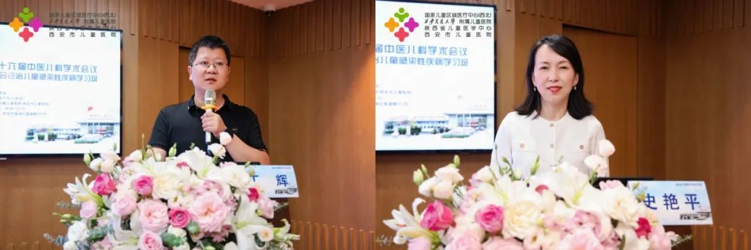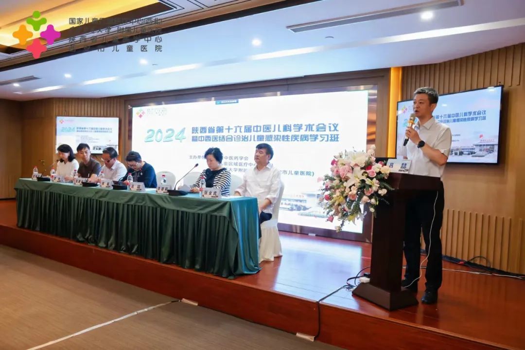 我院吕喆书记、陈艳妮副院长、陕西省中医药学会张德兴秘书长、中华中医药学会儿科专业委员主任委员熊磊教授为本次会议开幕式致辞。