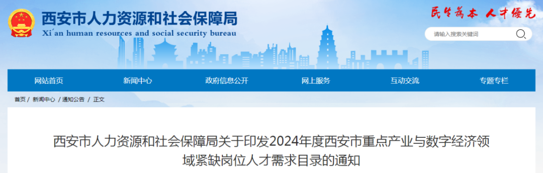 近日,西安市人力资源和社会保障局发布《关于印发2024年度西安市重点产业与数字经济领域紧缺岗位人才需求目录的通知》,全文如下。