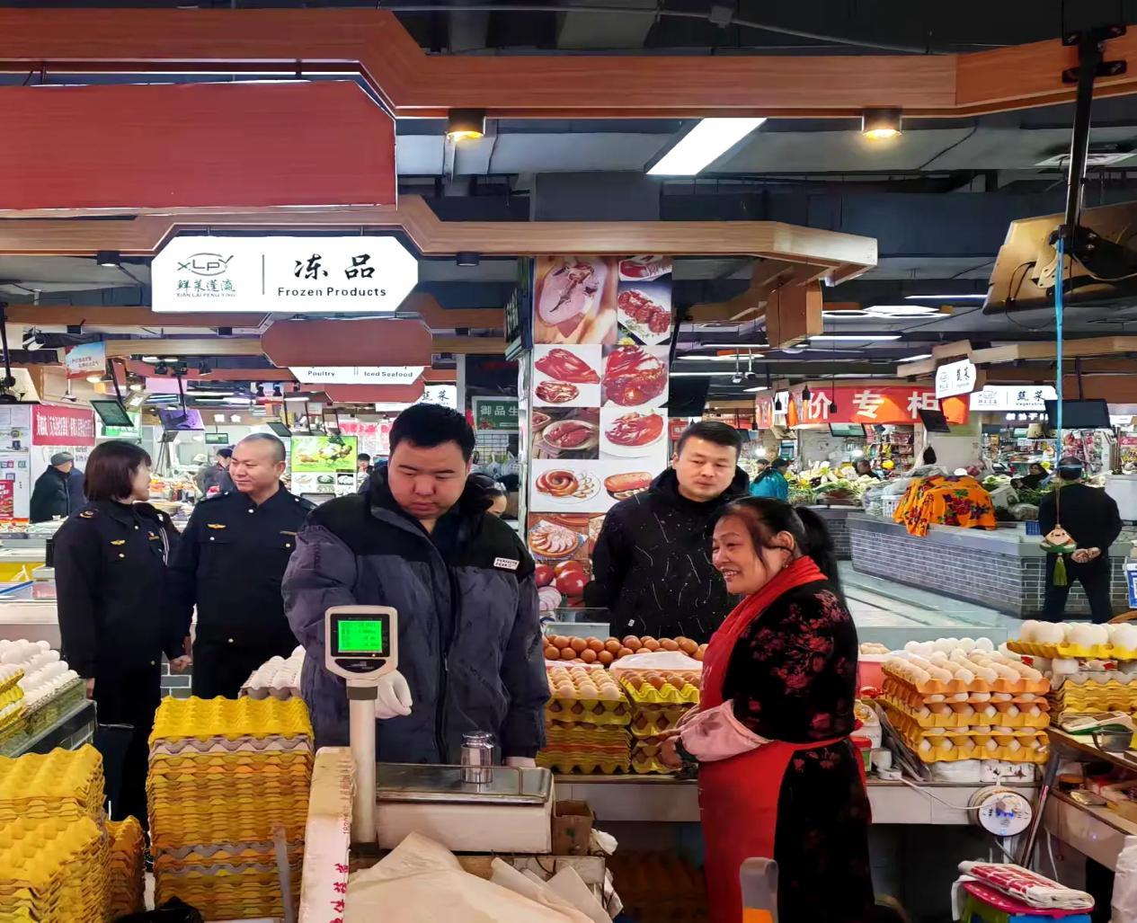12月17日,西安市市场监督管理局电子计价秤整治工作联合检查组对经开区蓬瀛农贸市场电子秤使用情况进行监督检查。