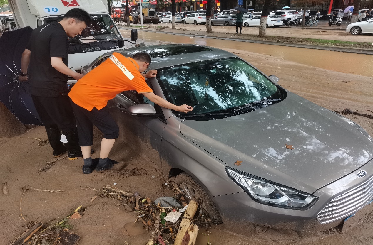 2024年7月16日晚间,宝鸡全域迎来降雨天气,三小时内降雨量超100毫米。渭滨区桥南街道石坝河及其支流涨水漫堤,导致市区部分区域出现内涝,人民公园、石坝河街道等地受灾严重,道路停放车辆被冲走,地下车库大面积进水。面对暴雨灾害,平安产险宝鸡中支立即启动大灾应急预案,成立专项应急救援理赔小组,在当地政府部门统一部署下开展理赔及救援工作。中支总经理室带队第一时间赶往现场进行车辆排查,调动全辖施救单位参与大灾现场救援;设置3000平米保全场地,组建专业赔付团队,开展现场直赔;平安产险陕西分公司客服理赔部同步组织人员赶赴现场驰援,全力推进受灾车辆救援理赔定损工作,保障群众生命财产安全。