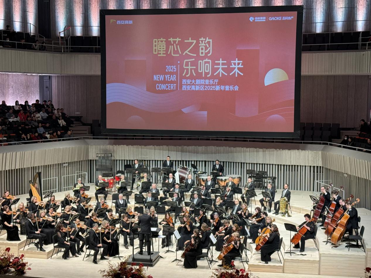 当晚,西安大剧院音乐厅启用,迎来首场专业团队演出——“瞳芯之韵·乐响未来”西安高新区2025新年音乐会。音乐会由西安高新区管委会主办,邀请俄罗斯最杰出的交响乐团之一——俄罗斯西伯利亚交响乐团为大家倾情演奏。来自企业、公安、消防、教育、医疗、环卫、媒体等社会各界人士到场聆听,在美妙的音乐体验中,回望过去一年的奋斗之路,致敬每一位向高攀登、向新而行的奋斗者、奉献者、建设者。