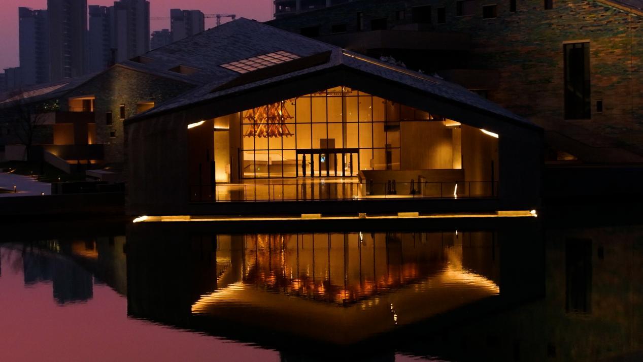 首次“亲密接触”,西安大剧院以原真雅致的审美和自然朴素的风格、音乐厅专业的演出效果,为观众带来了一场精彩绝伦的视听盛宴。在灯光的点缀下,西安大剧院连绵起伏的建筑形态仿佛蜿蜒恢弘的山脉,灯光倒映在瞳湖水面闪烁如星,建筑空间与自然环境融为一体,吸引不少前来观看演出的市民打卡合影。
