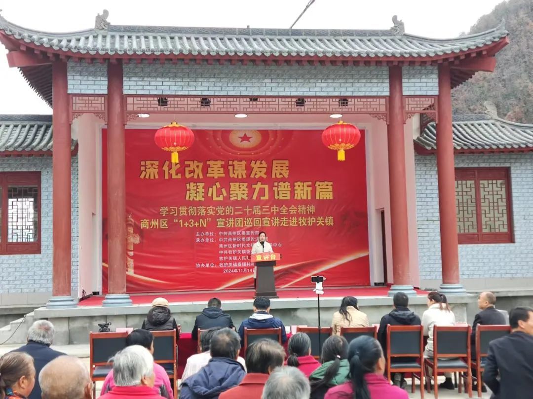 为了深入贯彻落实党的二十届三中全会精神,全面推动党的创新理论融入人民的日常生活,真正做到家喻户晓,11月11日至11月底,商州区围绕学习贯彻落实党的二十届三中全会精神,深入全区6个镇(街道),以“深化改革谋发展 凝心聚力谱新篇”为主题,通过整合人力资源,组建多样化的宣讲团,开展“1+3+N”宣讲团巡回宣讲活动,将党的二十届三中全会精神传达至基层群众,实现理论与实践的紧密结合,使宣讲活动走出会议室,走向田野,走进千家万户,在村(社区)中掀起了新的学习热潮。