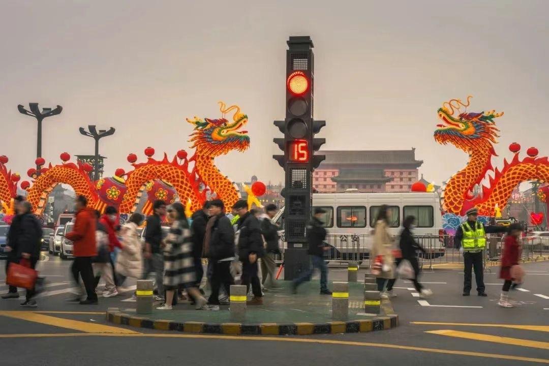 春节期间,西安公安交警融媒体发布厅聚焦群众出行需求通过微博、抖音等平台发布实时路况及出行提醒,为广大群众营造安全感满满的幸福年。