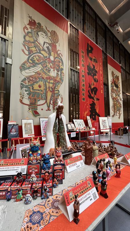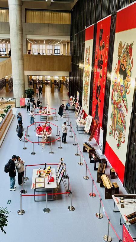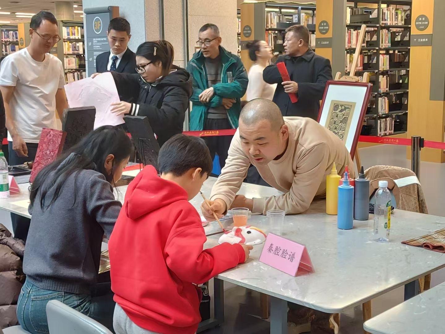 1月1日起,陕西省图书馆高新分馆内秦腔脸谱、唐三彩、木版年画各显风采,精致绝伦的剪纸剪出了长安唐诗的风韵;国家级非遗项目皮影和澄城刺绣布艺尽显关中地区民间文化的审美观念;古朴别致的泥叫叫、关中浮雕彩塑、古琴、板胡、二胡……展览期间,这些精美的展品深深吸引着每一位读者,让人们触摸非遗、感受非遗,感知与先辈们创造的历史文化遗存对话的过程。