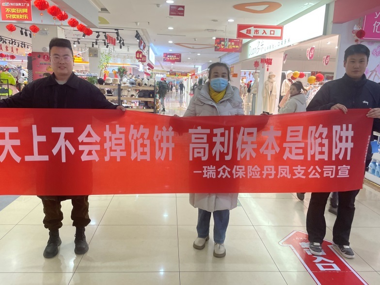 活动中,瑞众保险商洛中支丹凤支公司以“天上不会掉馅饼 高利返本是陷阱”为主题,通过向商场顾客讲解防范非法集资宣传,提醒顾客注意防范不法分子,提高人员防范非法金融、反洗钱、打击电信网络诈骗等违法犯罪的能力,增强广大群众防范非法金融意识,提醒广大群众守护好 “钱袋子”。