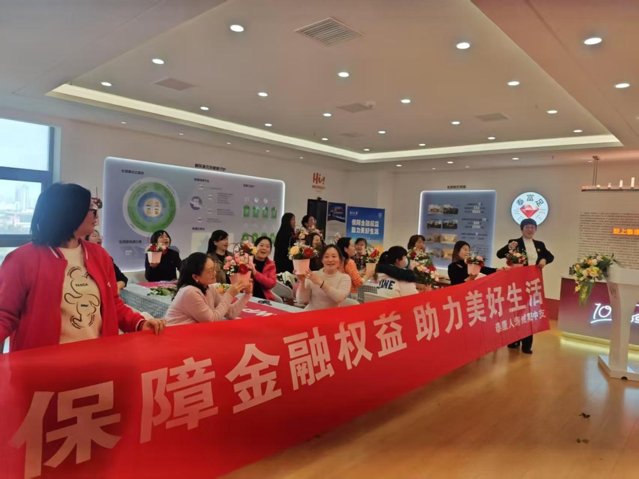 2025年3月7日泰康人寿咸阳中支举办的花艺DIY与消费者权益保护活动在招行咸阳人民东路支行和中支健财中心温情上演,此次活动将三八妇女节的浪漫氛围与消费者权益保护的严肃主题巧妙融合,吸引了众多女性朋友参与。