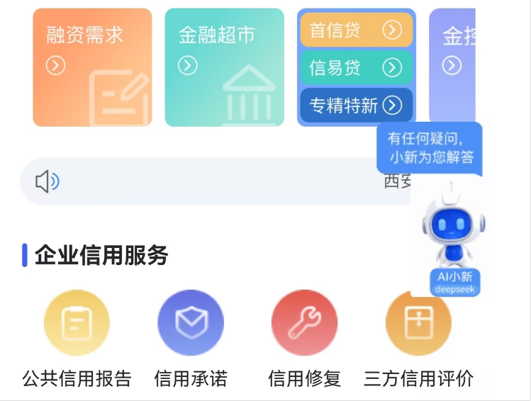 3月13日,西安高新区信用综合服务平台全面接入DeepSeek人工智能大模型,开启助企服务、金融赋能、信用建设智能服务的新篇章,为助企服务场景注入全新驱动力,标志着高新区在推进数字化转型、打造政府智慧化服务体系进程中的全新升级。