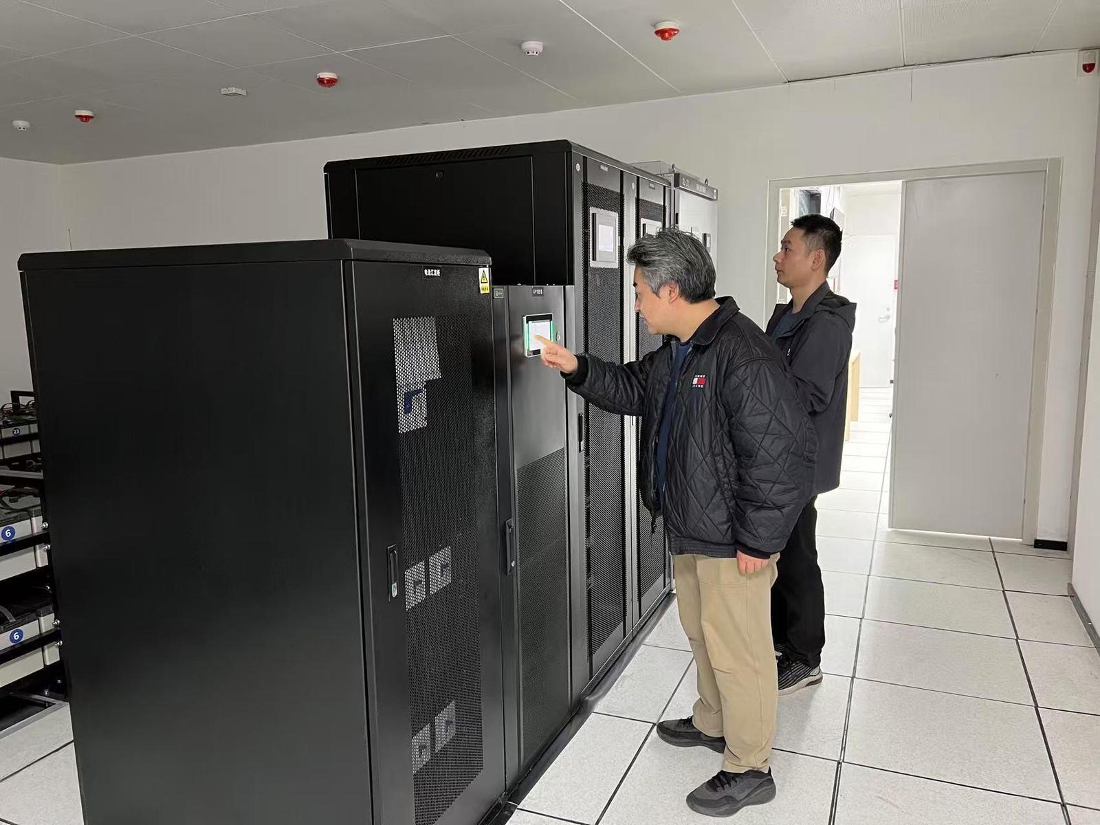 西安移动工作人员正在进行日常机房巡检