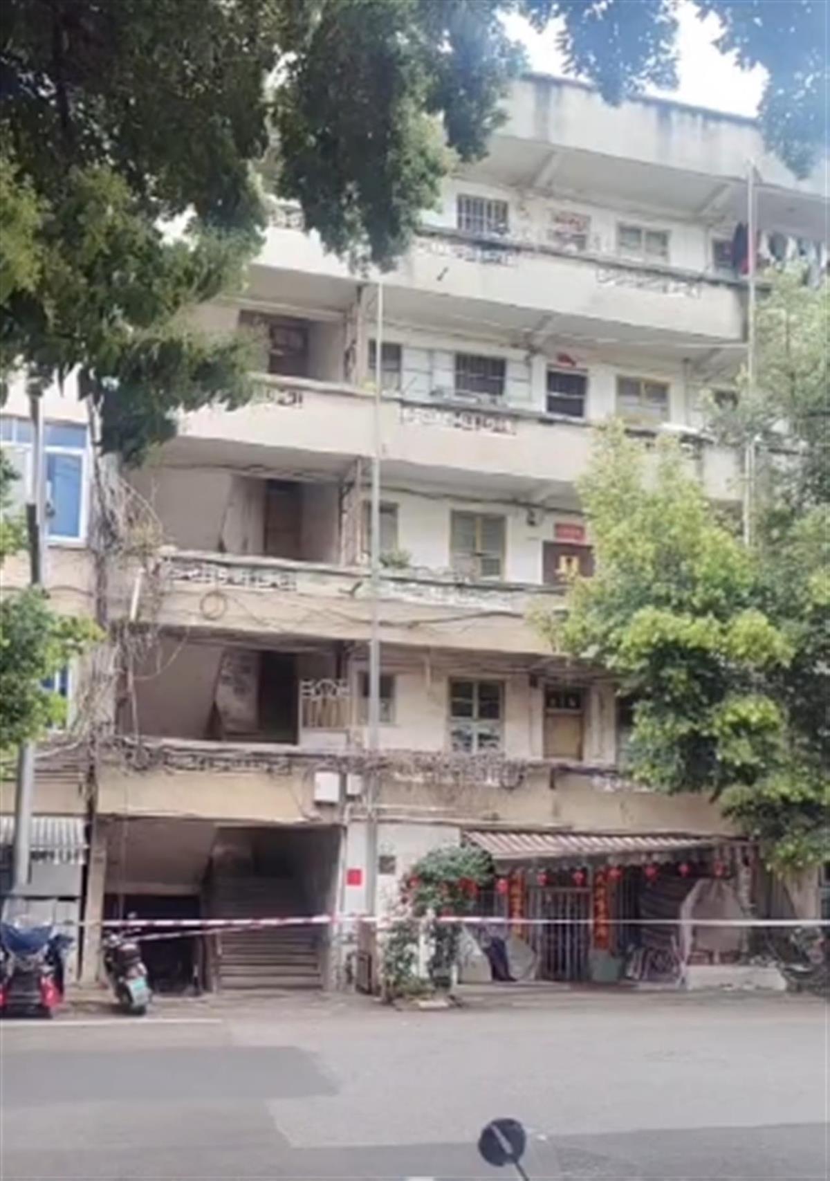 网友拍摄的视频显示,一栋5层民房楼下拉起了警戒线,该楼外观看上去相对较老。据发布视频的网友称,这是广西贺州八步区八步街道芳林路的一栋老楼,出现墙体开裂。