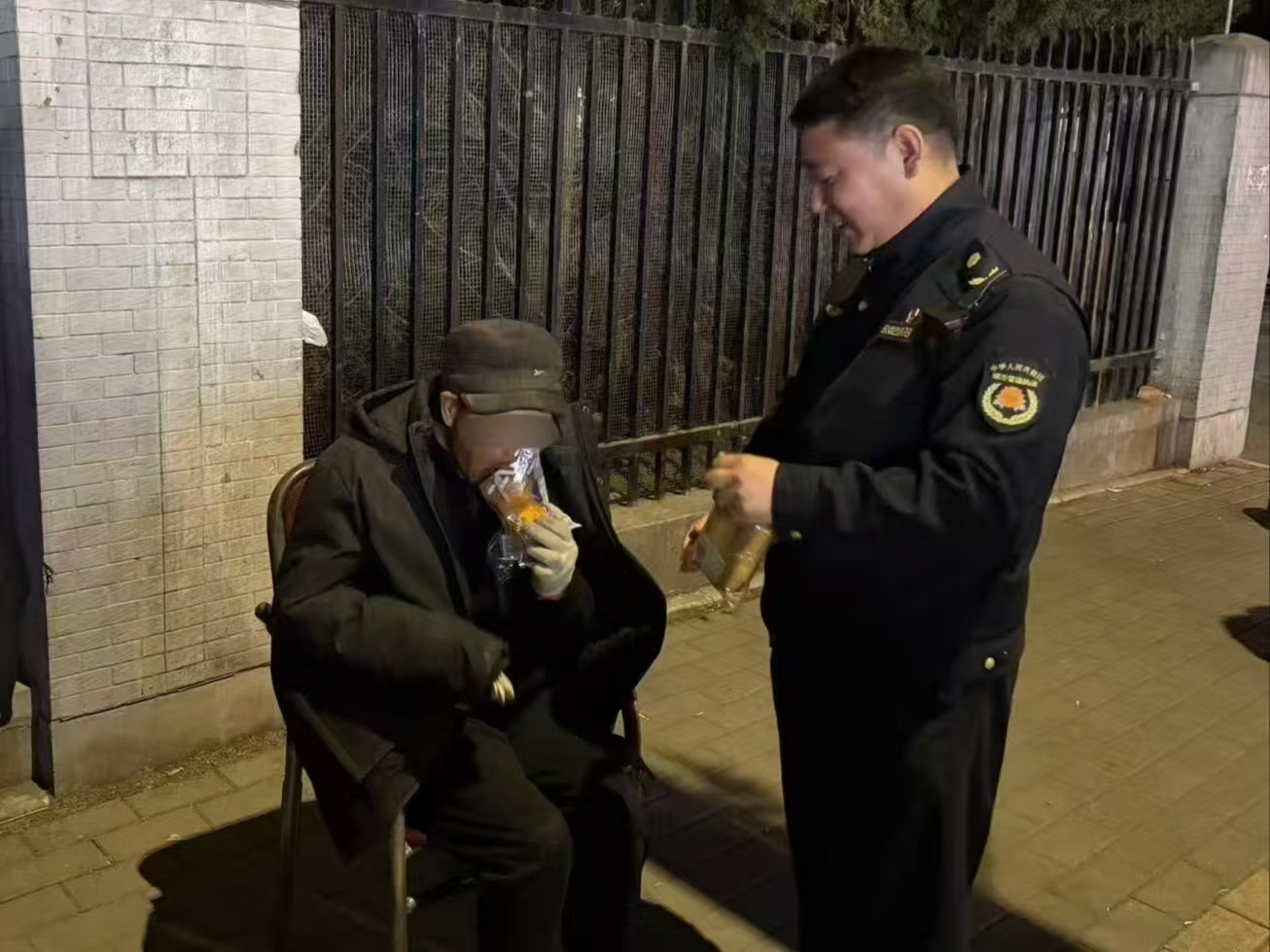 执法人员将老人的照片发给附近村组的村委会干部辨认,均表示不是本村村民。随后,执法人员联系了带班干部刘新亮,拨打了110报警电话。很快,刘新亮到达现场,他一边安抚老人的情绪,一边引导老人回忆家属联系电话、家庭住址等信息,并在老人模糊的语言中隐约听到了“未央”“饿了”等词语,刘新亮意识到老人可能家住未央区,且长时间未进食,便立即到商店购买了面包和牛奶递到老人手中。