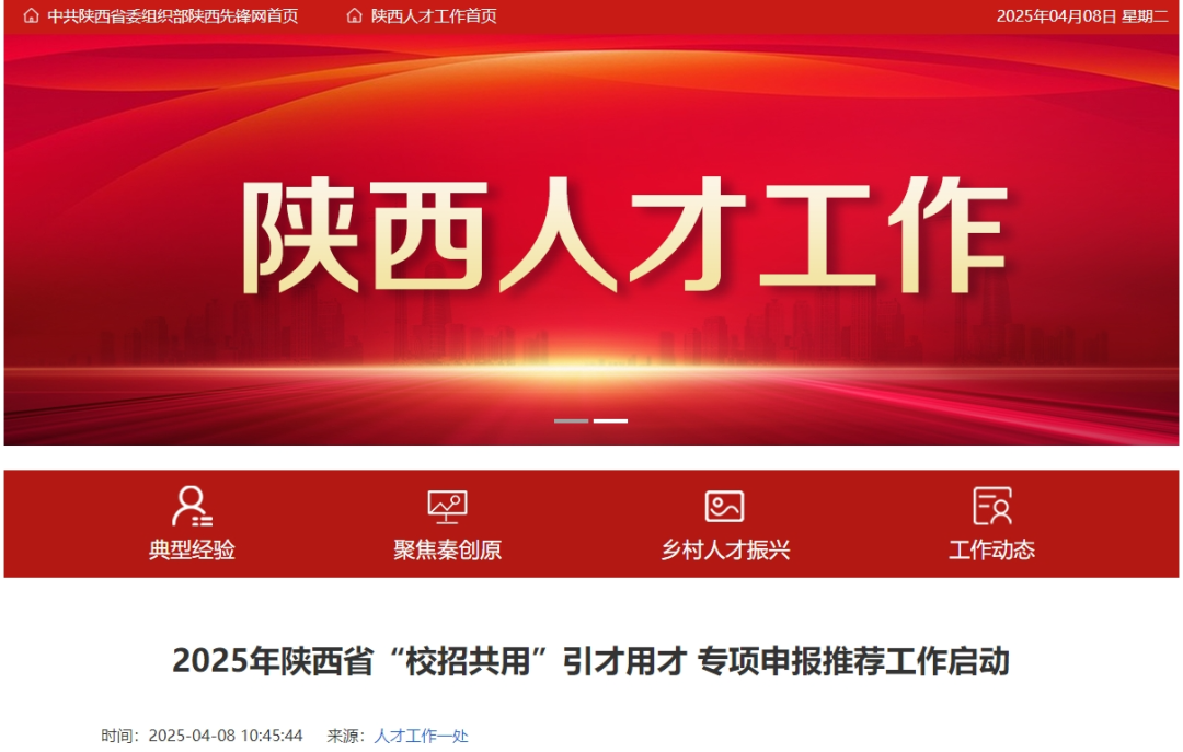 近日,2025年陕西省“校招共用”引才用才专项申报推荐工作开始启动,欢迎符合条件的人才积极申报。