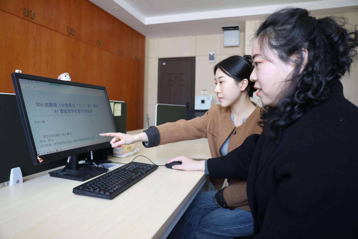 “教学资源适配度9分,提问有效性12分,学生参与度15分……”课堂结束3分钟后,陕西师范大学陆港小学数学教师魏媛收到了自己的课堂评估报告,并对照报告中的建议在教案上记录需巩固提升的部分。