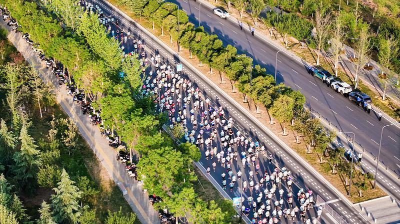 从空中俯瞰,赛道构成一个“西”字。这样的设计让跑者既能感受历史文化,又能欣赏现代城市景观。“这条赛道太棒了,跑起来一点都不枯燥。”来自河南的参赛选手张伟赞叹道。