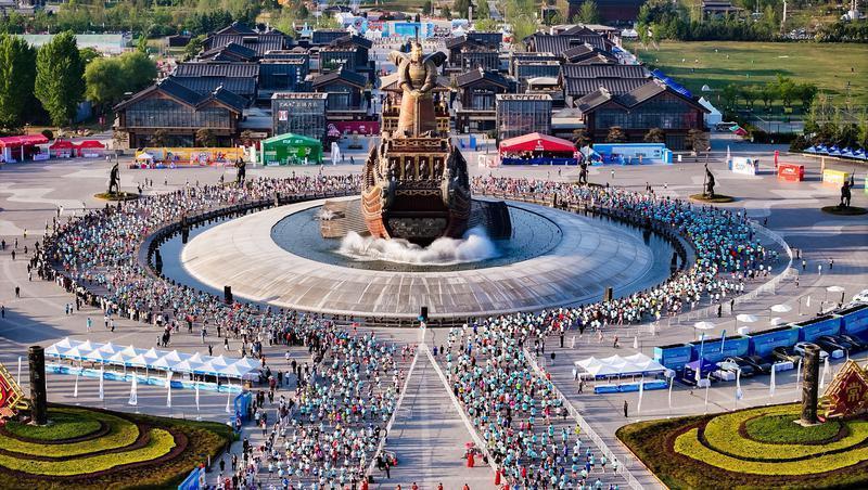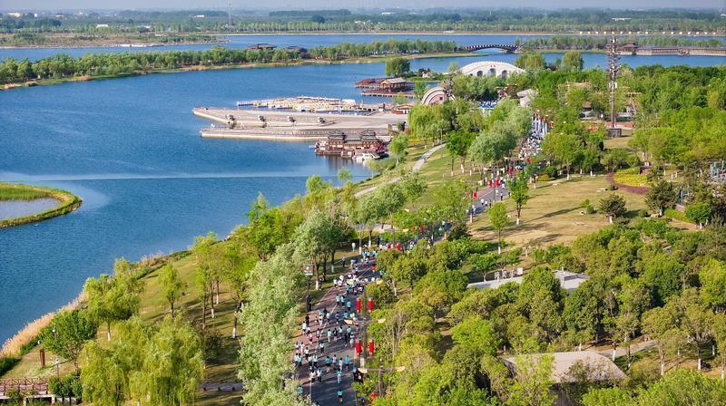 比赛选址的昆明池历史上是汉武帝为训练水军而开凿,牛郎织女的传说也相传在此。如今,这里不仅发挥着水利调节的重要功能,更蜕变为兼具历史厚重感与生态美学价值的城市景观。今年赛道在往届经典路线基础上优化升级,全程21.0975公里,首次引入“赛道蓝线”导航系统。线路巧妙融合昆明池历史文化景观与现代城市风貌,途经云汉广场汉武帝雕塑、七夕公园爱情主题区、秦创原科技走廊等,沿途设14个特色“文化加油站”,展示各类非遗项目。