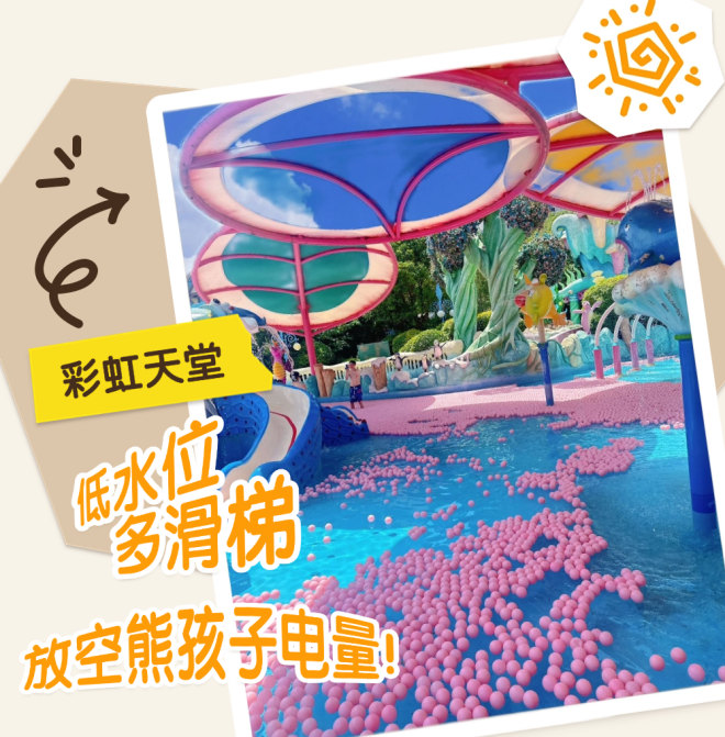 彩虹天堂戏水区、龙卷风和大喇叭组合,低水位+双玩法设计,宝爸宝妈轻松遛娃,熊孩子电量一键放空!