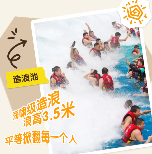 3.5 米海啸级造浪池,浪花平等掀翻每一个人;1500米环园漂流河,躺平随波逐流,烦恼瞬间清零~