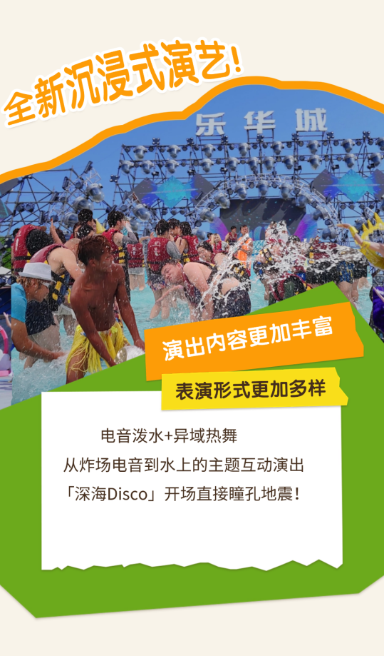 全新「深海 Disco」电音泼水派对炸裂开场!异域热舞、水上互动演出轮番上演,白天泼水狂欢,夜晚灯光秀 + 电音炸场,视听盛宴全天无间断✨