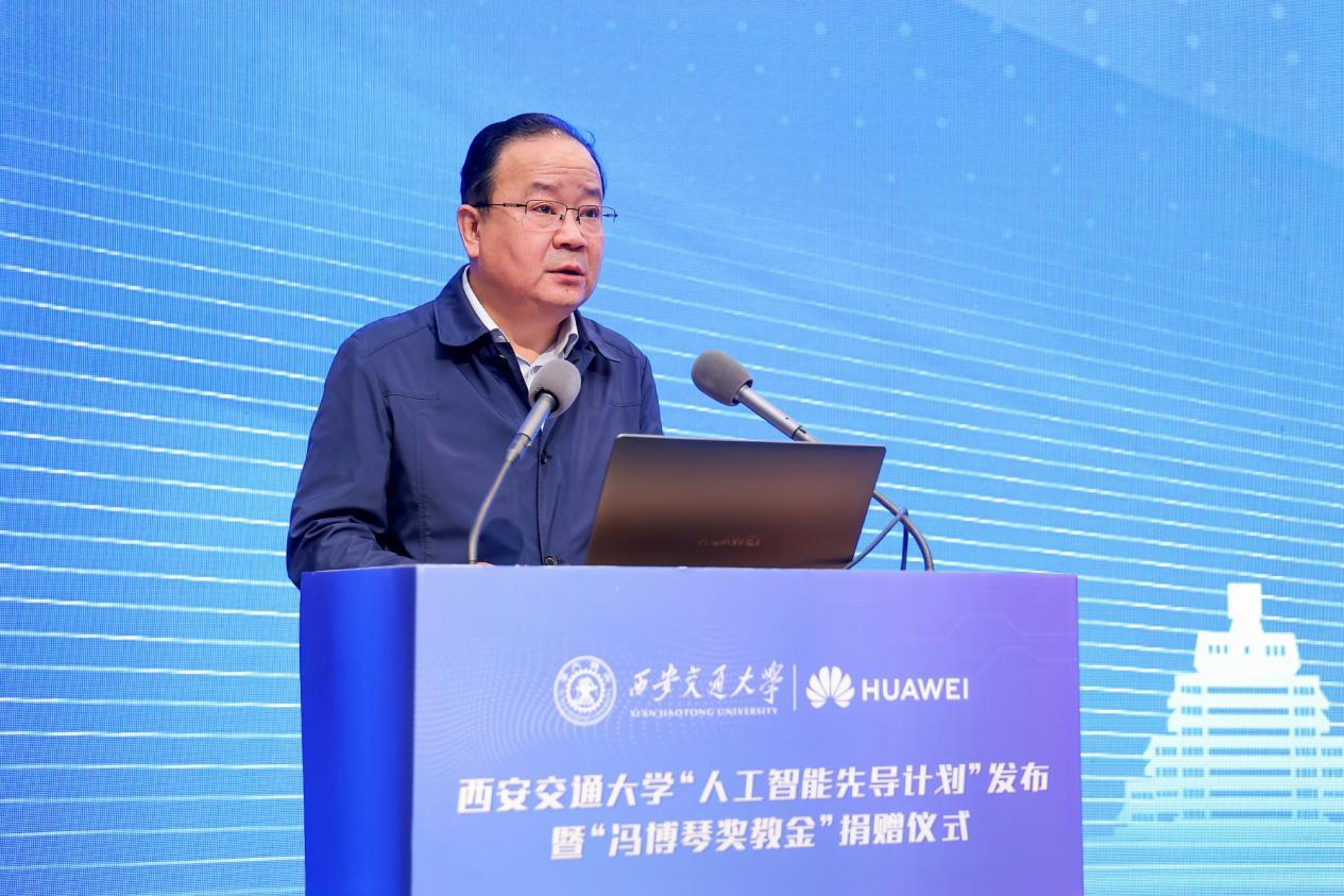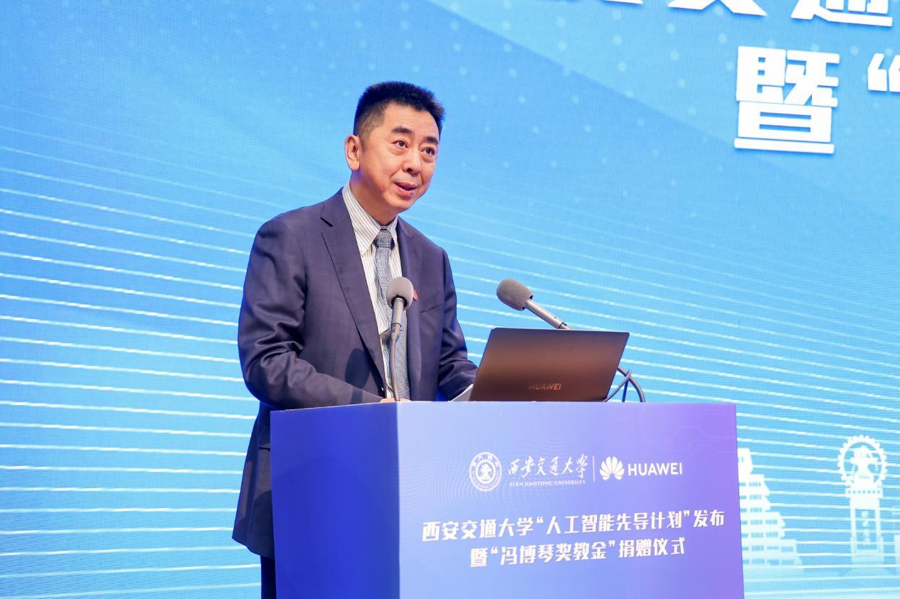 4月30日,西安交通大学“人工智能先导计划”发布暨“冯博琴奖教金”捐赠仪式在创新港举行。教育部高等教育司课程教材与实验室处处长刘永强,陕西省委教育工委、省教育厅巡视员张和平,中国工程院院士、西安交通大学校长张立群,中国工程院院士郑南宁,、中国科学院院士徐宗本、中国科学院院士管晓宏,国家教学名师冯博琴,西安交通大学校友、华勤技术有限公司董事、副总经理吴振海,华为中国政企业务副总裁郭振兴出席活动。校内相关学院、部门负责人,师生代表和媒体代表约500人参加活动。会议由西安交大党委常委、副校长洪军主持。