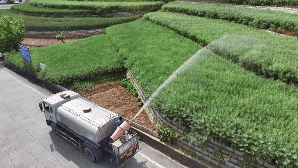 当前,小麦正处于灌浆期,充足的水分对于籽粒灌浆至关重要。在徐家坪镇徐家坪社区,一辆洒水车正缓缓行进在田间道路上,伴随着水泵开启,一股水雾喷射而出,“甘霖”均匀洒落,滋润着干渴的作物。