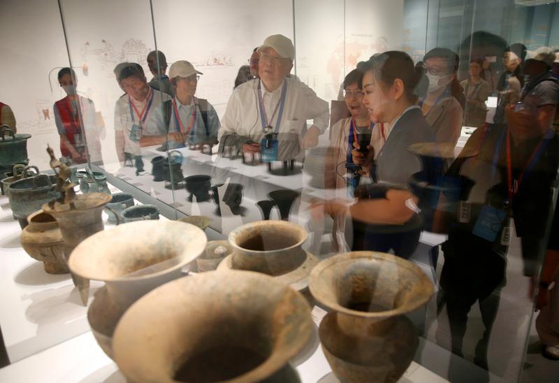 游客在陕西历史博物馆参观“吉金·中国——中国青铜文明的兴起与繁荣”展览