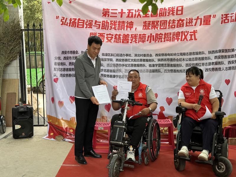 在第35个全国助残日来临之际,5月17日,以“弘扬自强与助残精神凝聚团结奋进力量”为主题的助残日活动暨西安慈善残障小院揭牌。此后,残障人士、孤寡老人又多了一个吃饭睡觉、晒着太阳聊天的“家外之家”。