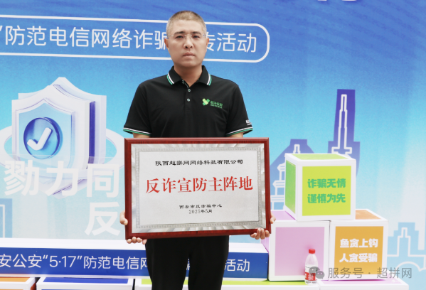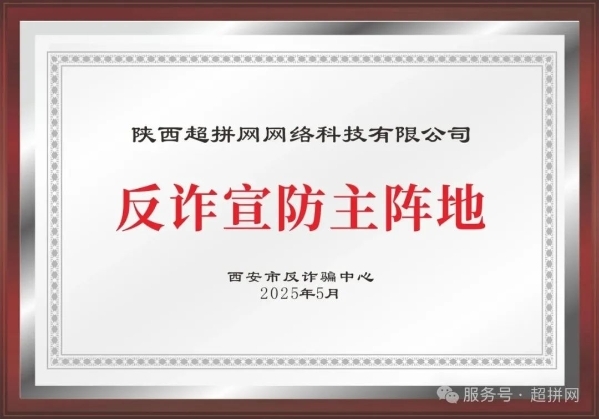 2025年5月17日,由西安市反诈中心牵头组织的“5·17国际电信日全民反诈宣传大会”在西安隆重举行。会上,陕西超拼网网络科技有限公司因在全民反诈宣传领域的突出贡献,被授予“反诈宣防主阵地”称号。作为全省唯一获此称号的三方电商平台,超拼网再次展现了其在技术力、责任感、影响力等方面的综合实力。